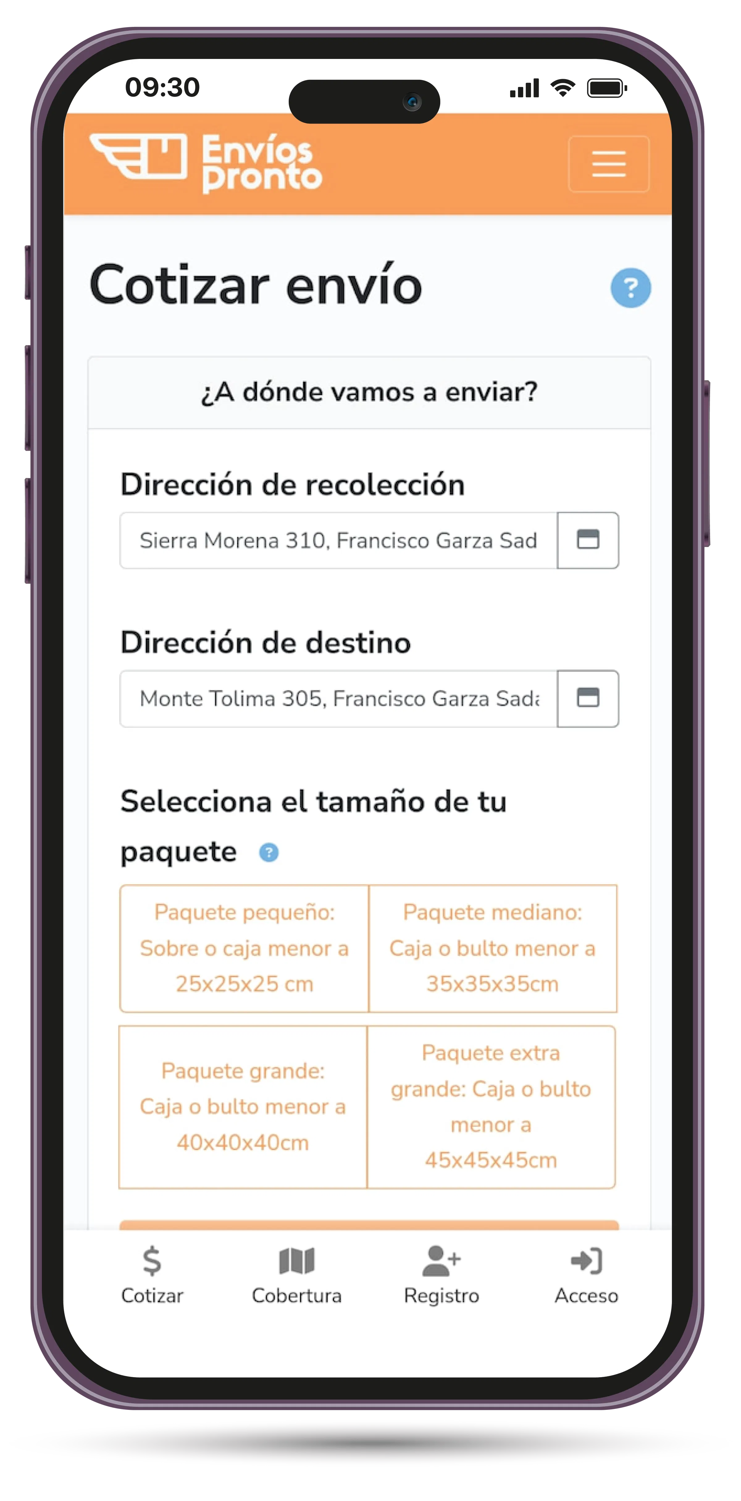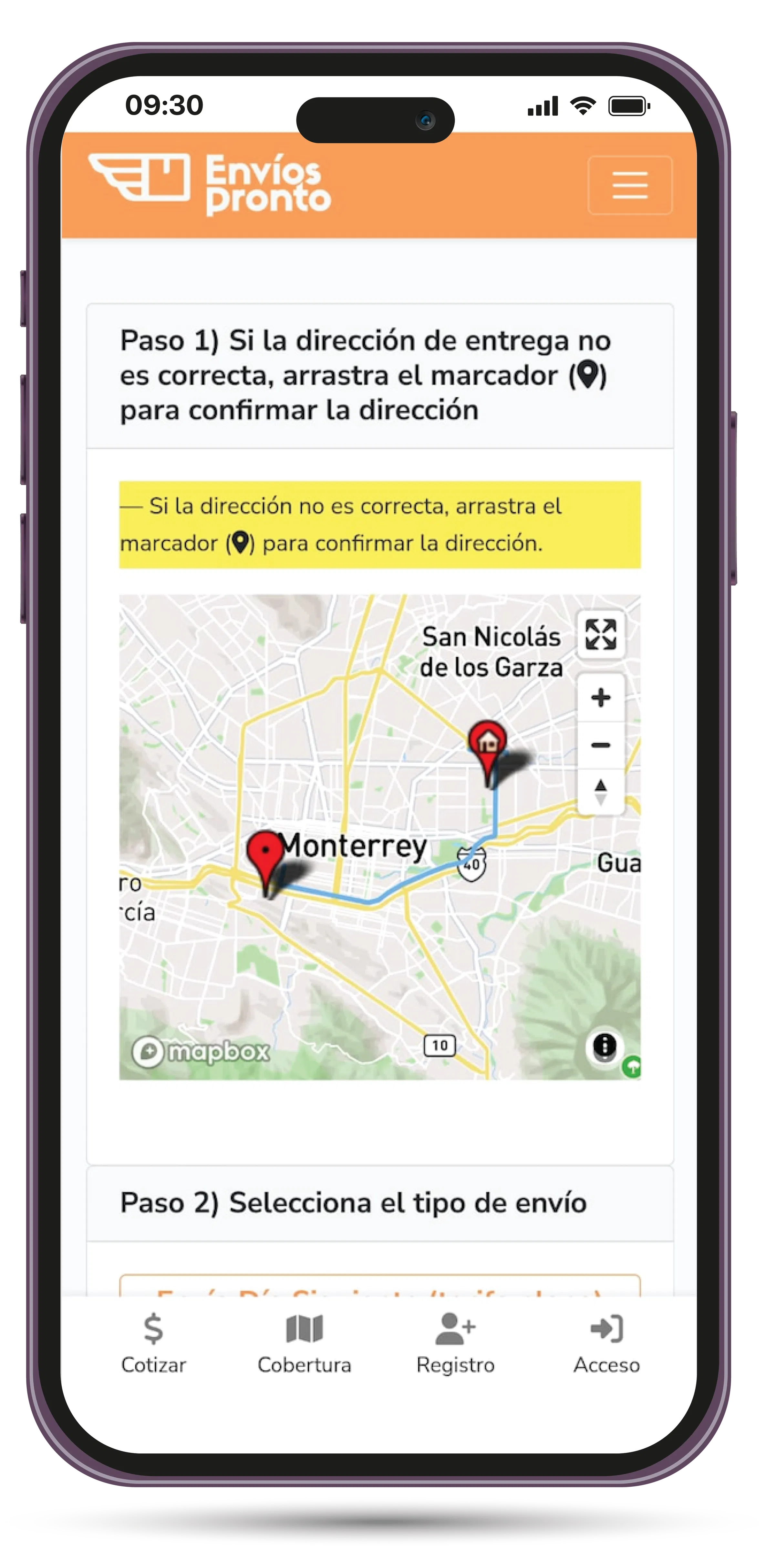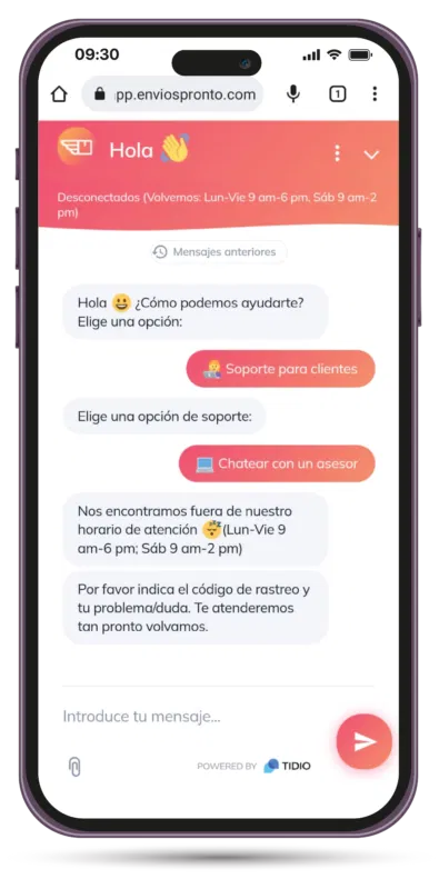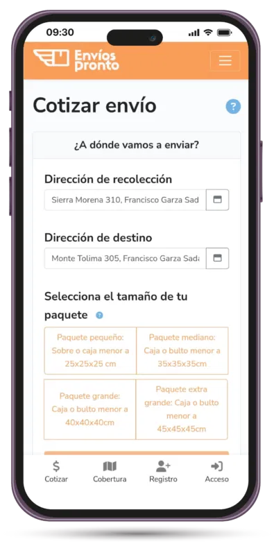 Por ejemplo, todos tus pedidos solicitados un lunes, se entregarán el martes. Y si agendas un envío el mismo martes temprano, antes de las 9 de la mañana, ese mismo martes se entregará.